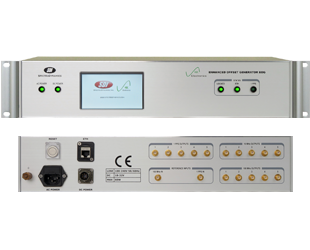 This instrument provides five sine wave outputs at 100 MHz, five sinewave outputs at 10 MHz and five 1PPS (one pulse-per-second) outputs. The sine wave outputs are buffered to provide greater than 100 dB of port-to-port and reverse isolation. The outputs are at a level of +13 ±1 dBm. The pulse outputs are derived from the 100 MHz sine wave outputs and are independently adjustable. The pulse outputs can be synchronized to an external reference pulse to within 10 ns. All instrument functions are displayed and controlled through the front screen touch interface and via the Ethernet port.