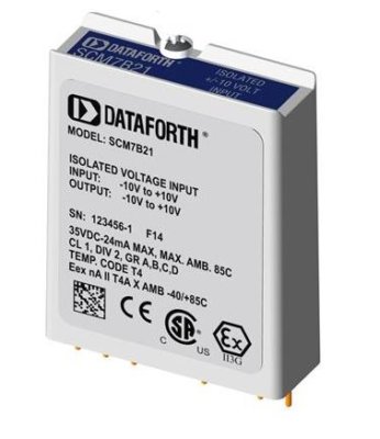 Each Dataforth 7B module provides a single channel of isolated analog input or output.